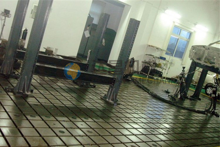 車身校正平臺的結構:按JB/T7974-1999標準制造,產品制成筋板式和箱體式,工作面有長方形、正方形,工作臺可加工T型槽,圓孔等。