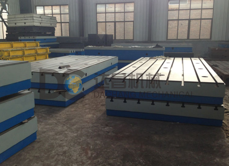 鑄造平臺GB/T 22095-2008標準制造。平臺精度等級有1、2、3級及精刨,板制成筋板式和箱體式,工作面有長方形、正方形或圓形。工作面采用刮削工藝,工作面上可加工V形、T形、U形糟和圓孔、長孔等。